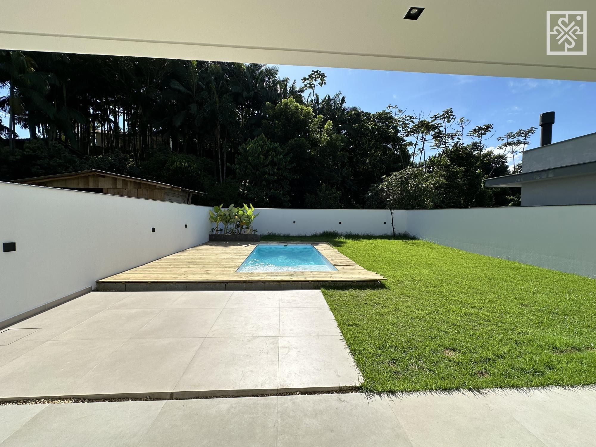 – Piscina com deck e amplo jardim, ideal para momentos de lazer e relaxamento