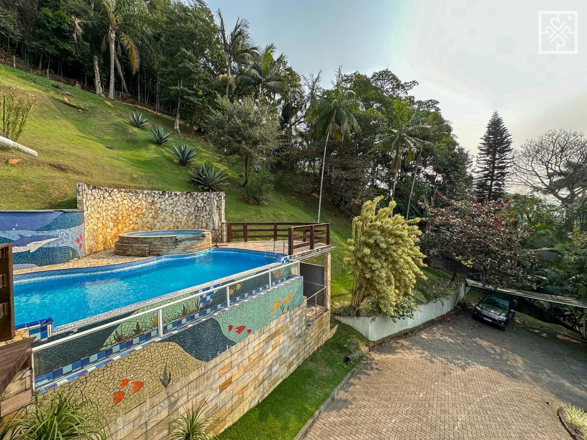 • Jardim exuberante com 3.324m², repleto de árvores e flores, proporcionando um ambiente de tranquilidade