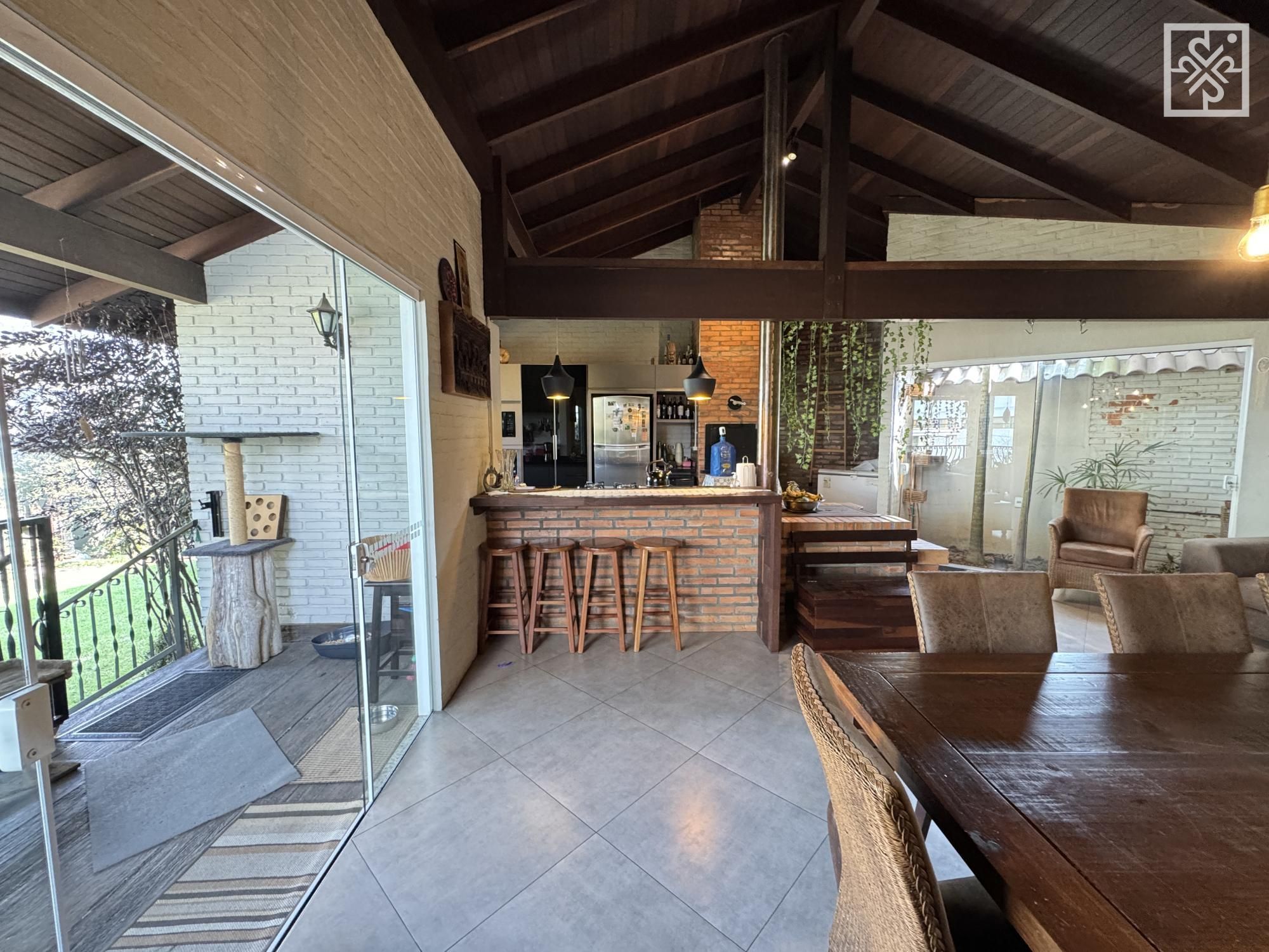 Para completar, o forro em madeira de Itaúba em toda a casa adiciona um toque de sofisticação e aconchego, unindo a beleza natural da madeira à funcionalidade do projeto arquitetônico.